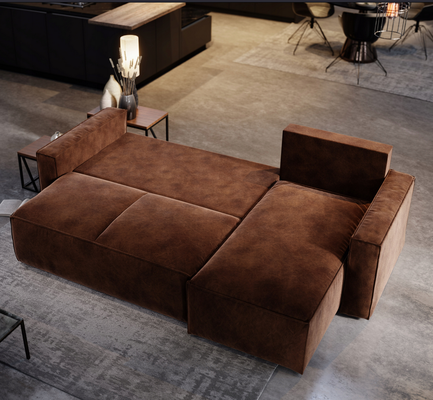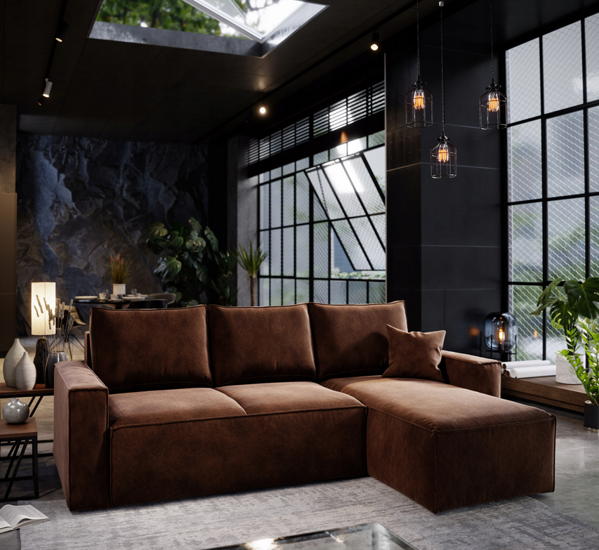Narożnik ZEUS 200 z funkcją spania i pojemnikiem Loftowy Brązowy